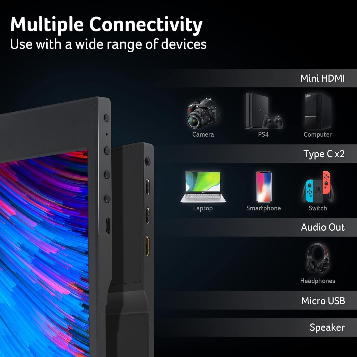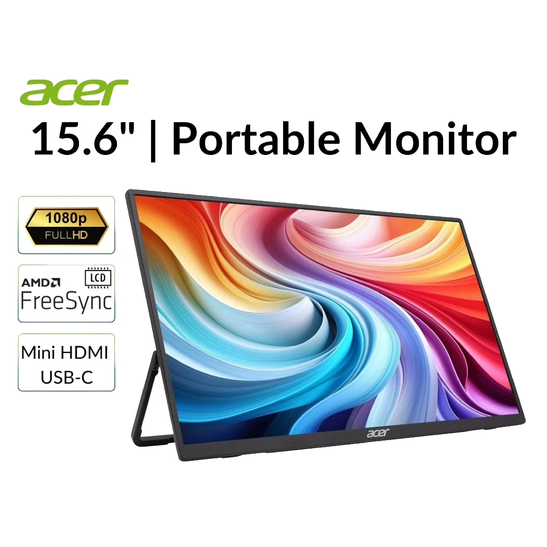 Lightweight, portable, and easy to set up, this sleek monitor fits effortlessly into your laptop bag. Built-in speakers, flexible connectivity, and a slim modern design make the Acer PM161Q the perfect companion for productivity and entertainment wherever you are.