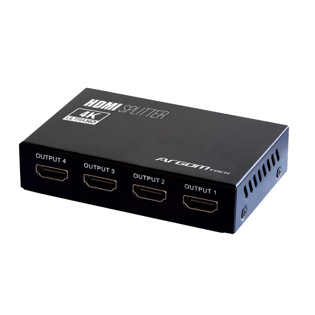 Expand your A/V experience with the Argom 4K HDMI 4 Port Splitter. Easily duplicate a single HDMI source — such as gaming consoles, computers, streaming devices, or other A/V players — to four displays, including monitors, TVs, or projectors. This splitter offers a convenient and cost-efficient solution for multi-screen setups.