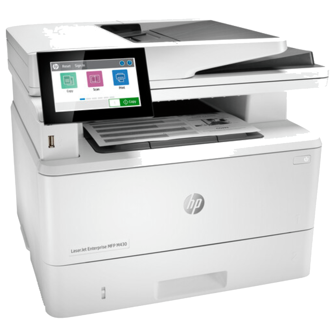 Work faster and smarter and grow your business with the LaserJet Enterprise MFP M430f Monochrome Laser Printer from HP. Offering printing, scanning, copying, and faxing, this workhorse is designed to integrate neatly into home offices and small workgroups. A 50-sheet ADF, 100-sheet multipurpose tray, and 250-sheet input tray are provided for letter and legal-size paper, and a 150-sheet output bin neatly stores your printed documents. The M430f features automatic duplex printing and fast print speeds up to 42 ppm for letter-size documents, and the unit’s 1200 x 1200 dpi print resolution ensures sharp text and graphics. Also featured is 16GB of eMMC storage and 2GB of memory.