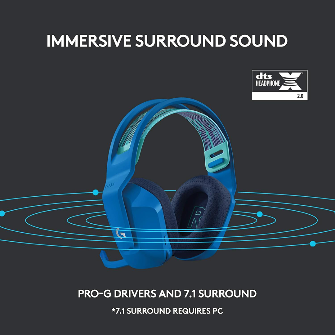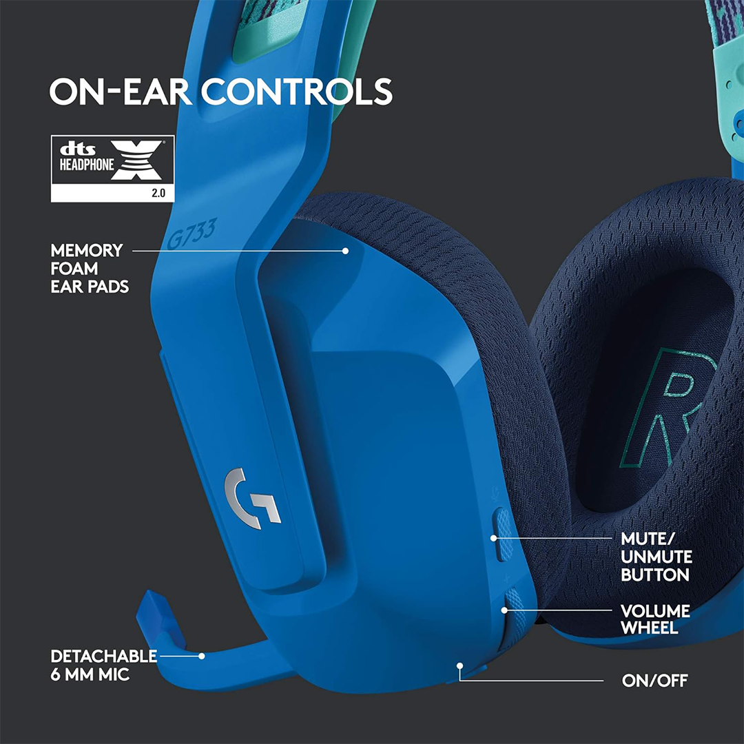 Enjoy vibrant, customizable lighting and immersive sound with the Logitech G733 Lightspeed Wireless Gaming Headset. Personalize dual-zone Lightsync RGB with 16.8M colors and preset animations—or create your own using G HUB software.