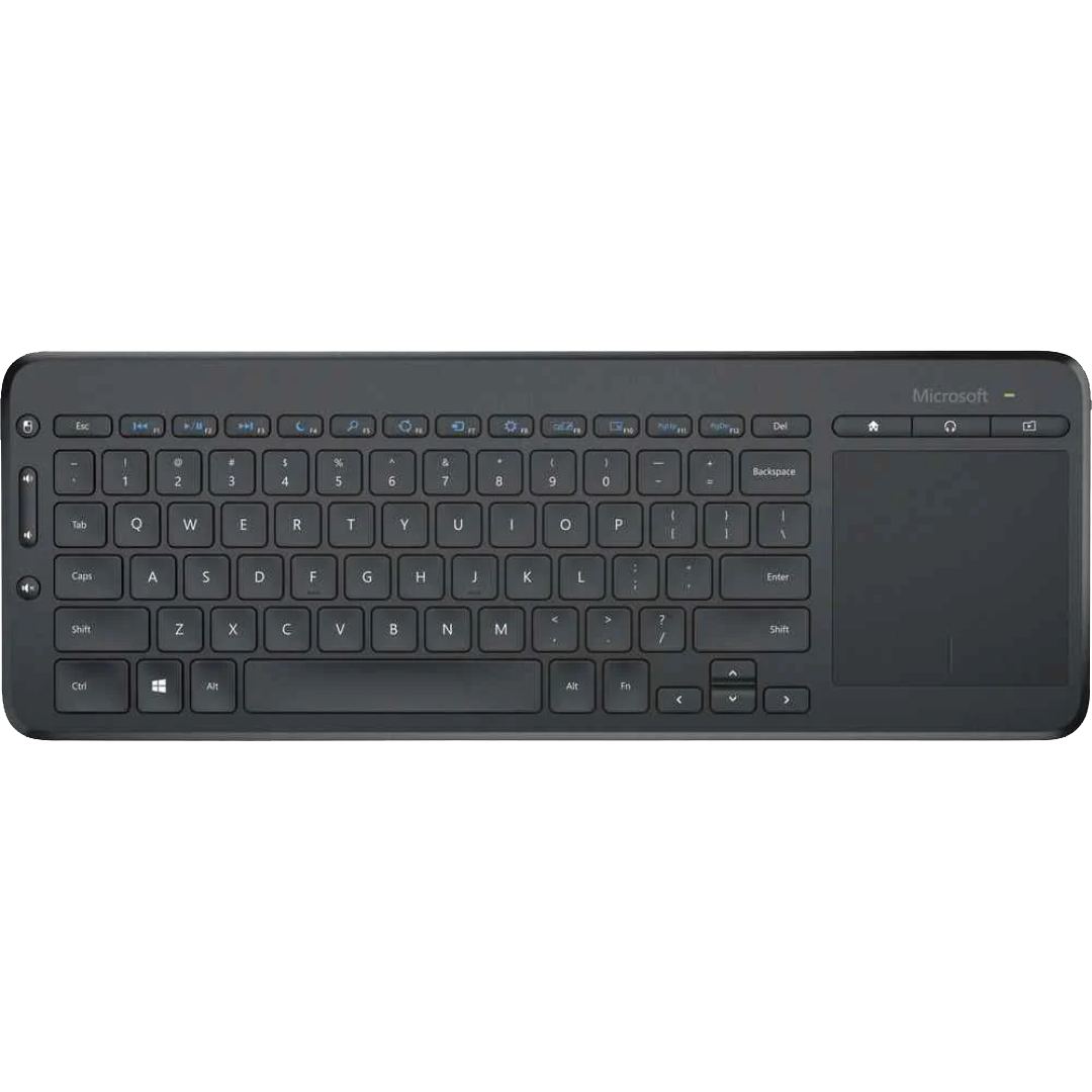 Microsoft N9Z-00001 All-In-One Media Keyboard: Integrated multi-touch track pad provides effortless navigation Customizable media hotkeys provide one-touch access to your content Durable, spill-resistant design Wireless connectivity (USB) Volume controls are positioned for easy access Basic keyboard functionality works with select USB HID compliant Smart TVs and gaming consoles