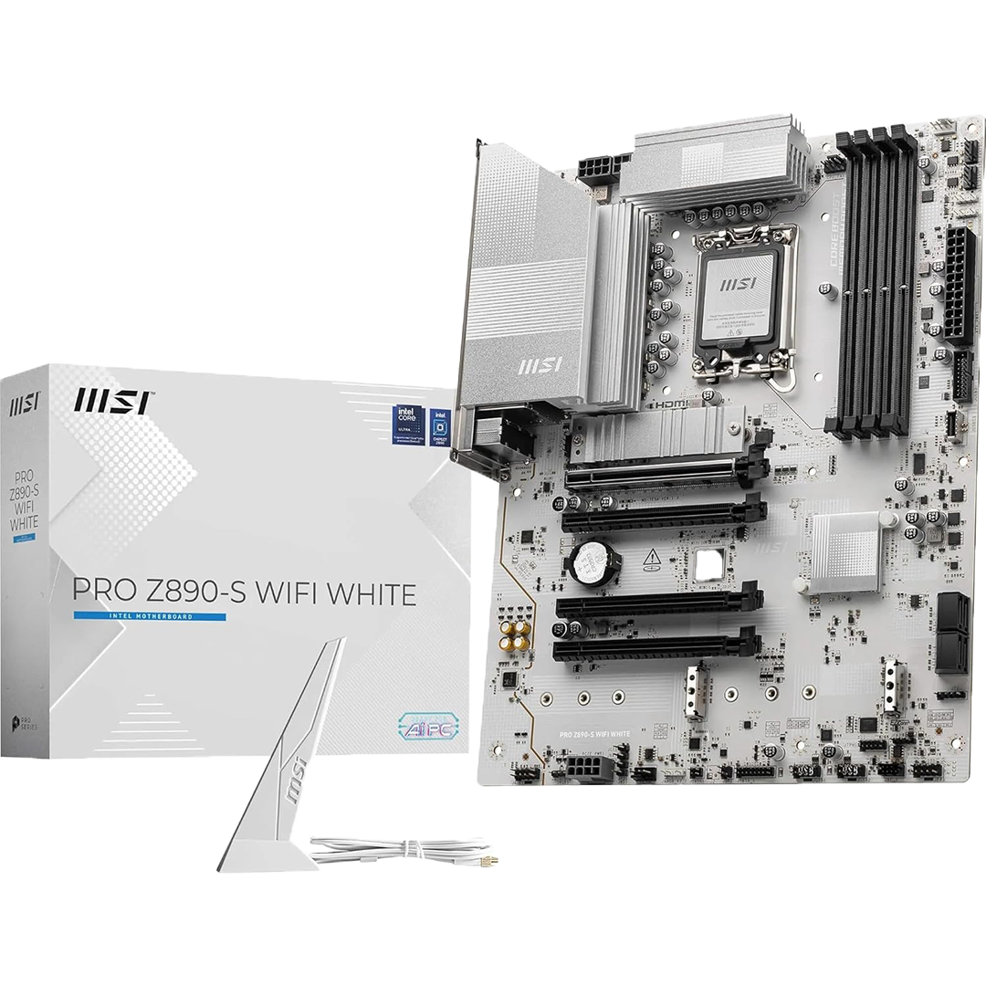 Power up your workflow by including the MSI PRO Z890-S WIFI WHITE LGA 1851 ATX Motherboard in your computer build. Supporting Intel Core Ultra series 2 desktop processors with the LGA 1851 socket, professional content creators can outfit this motherboard to smoothly handle demanding applications and AI workloads.