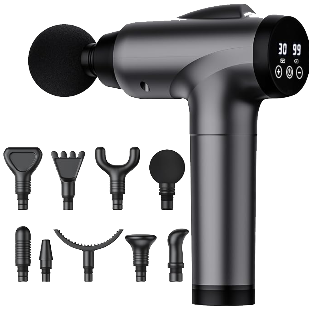 - 9 Massage Heads & 30-speed Levels: Our muscle massager gun boasts 9 massage heads and 30-speed levels to target various massage groups, including options for deep tissue. Ideal for use in your legs, arms, back, torso and neck.