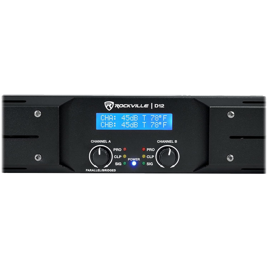 The Rockville D12 Amplifier delivers high-power performance with 5000W peak and 1400W RMS at 4 ohms, plus 700W RMS at 8 ohms, making it ideal for DJs, live events, or home audio systems. Its 2-channel design supports stereo and bridged modes with stable 4-ohm and 8-ohm outputs, perfect for powering passive speakers, subwoofers, or mixed sound systems.