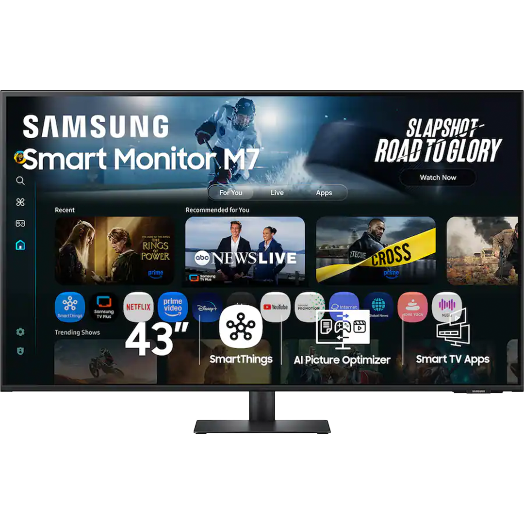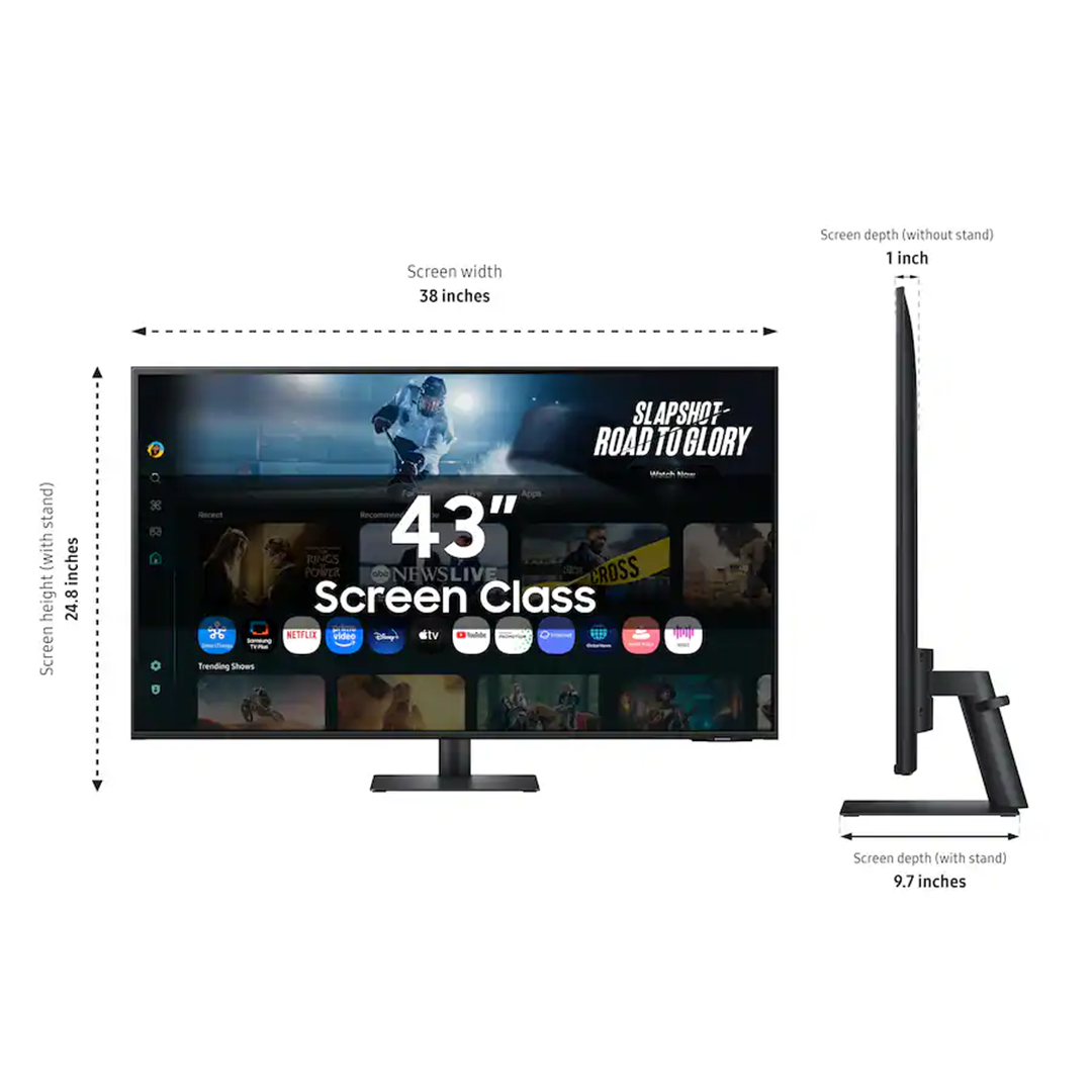Samsung’s 43″ M7 Smart Monitor brings AI-powered intelligence to your setup with smart features that adapt to how you work, play, and watch. Smart TV Apps provide instant access to your favorite content.
