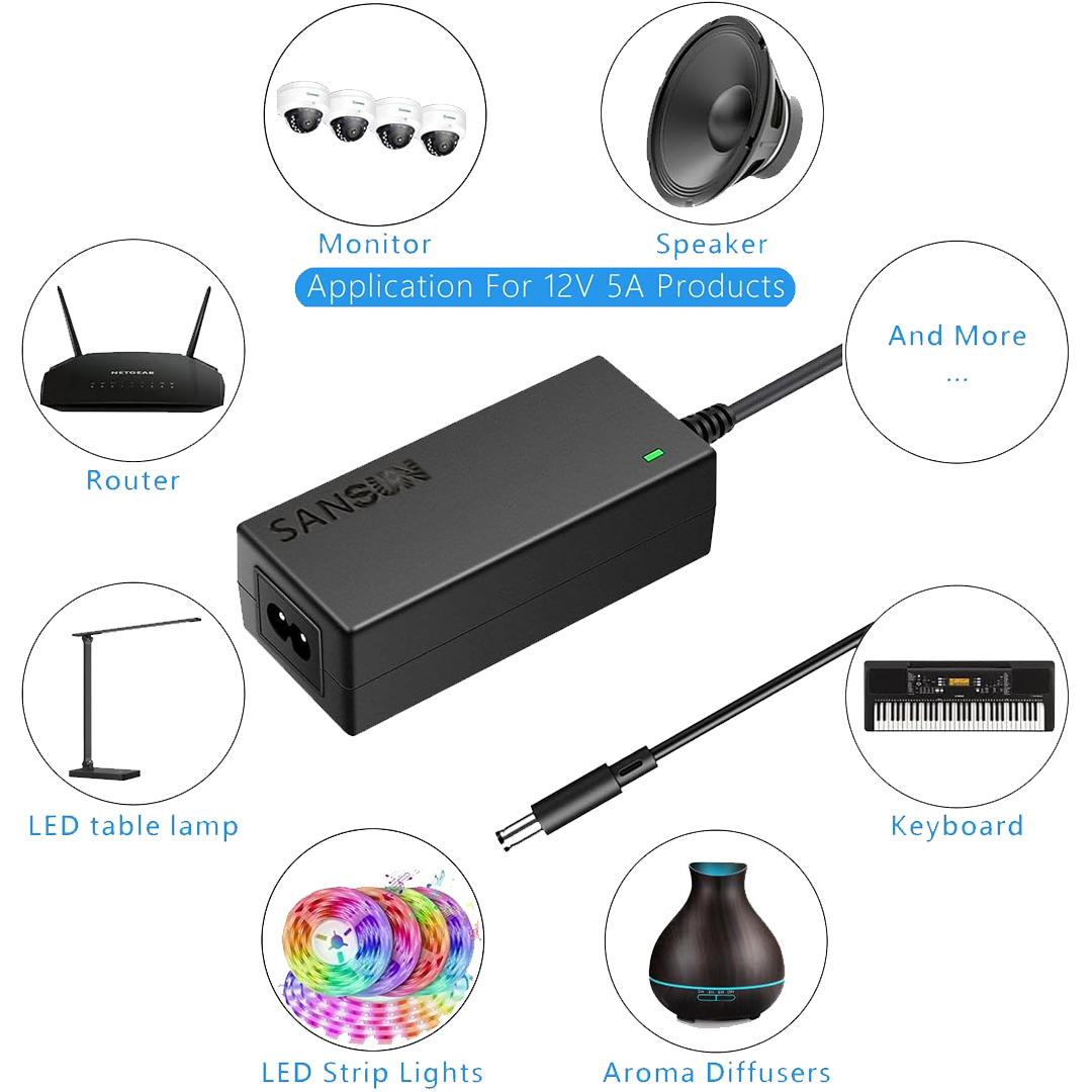Converts AC 100–240V to DC 12V (Max 5A / 60W)