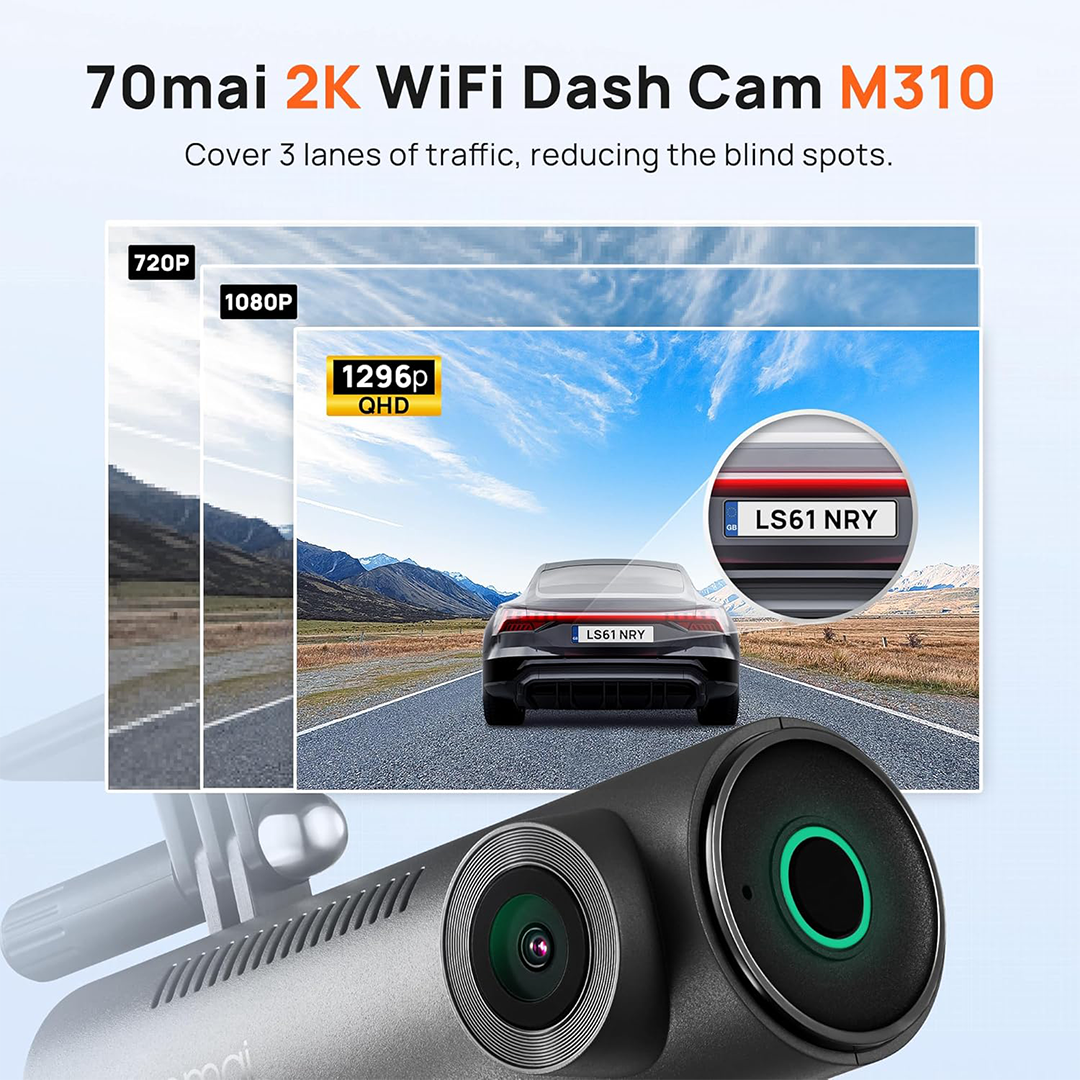 Keep your vehicle safe and secure with the 70mai QHD Dash Cam M310. Capture high-definition footage in 1296P QHD with a 130° wide-angle field of view, ensuring you record critical details like license plates, road signs, and surrounding traffic. Featuring WDR (Wide Dynamic Range) and 3D Noise Reduction, this dash cam provides clear, smooth video even in low-light or tunnel conditions.