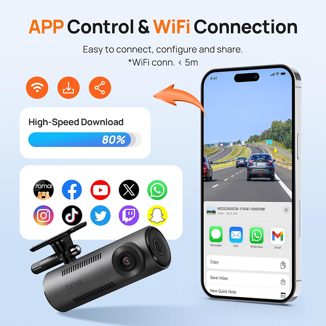 - Connectivity: WiFi, 70mai App, Mobile Control (iOS/Android)
